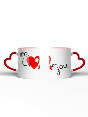 Kubek z imionami, zdjęciem lub dowolnym tekstem w sercu. Czerwone ucho w kształcie serca oraz czerwony środek kubka.